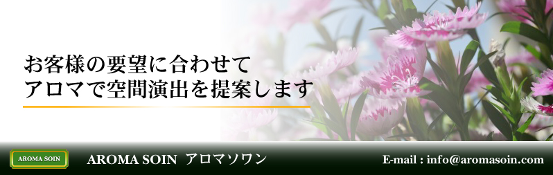 ストレスのかかった心と体を香りで癒します。様々な植物の香りが鼻から脳に伝わり幸福感や快感、リラックス効果等様々な効果をもたらします。